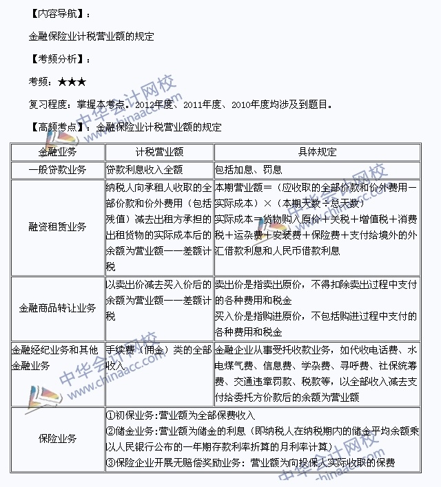 2013初级《经济法基础》高频考点:金融保险业计税营业额的规定