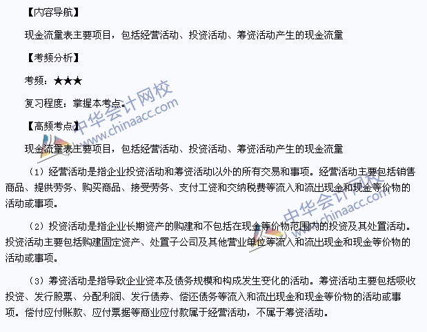 我们一起来学习2013年初级职称《初级会计实务》高频考点:现金流量表主要项目说明。本考点属于《初级会计实务》第七章财务报告第四节现金流量表的内容。