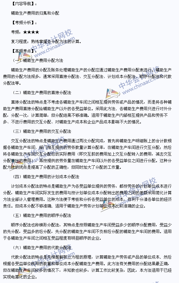 我们一起来学习2013初级职称《初级会计实务》高频考点:辅助生产费用的归集和分配。本考点属于《初级会计实务》第八章产品成本核算第三节要素费用的归集和分配的内容。