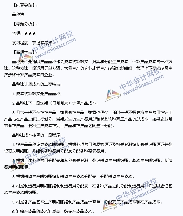 我们一起来学习2013年初级会计职称考试《初级会计实务》高频考点:。本考点属于《初级会计实务》第九章产品成本计算与分析第二节产品成本计算的品种法的内容。