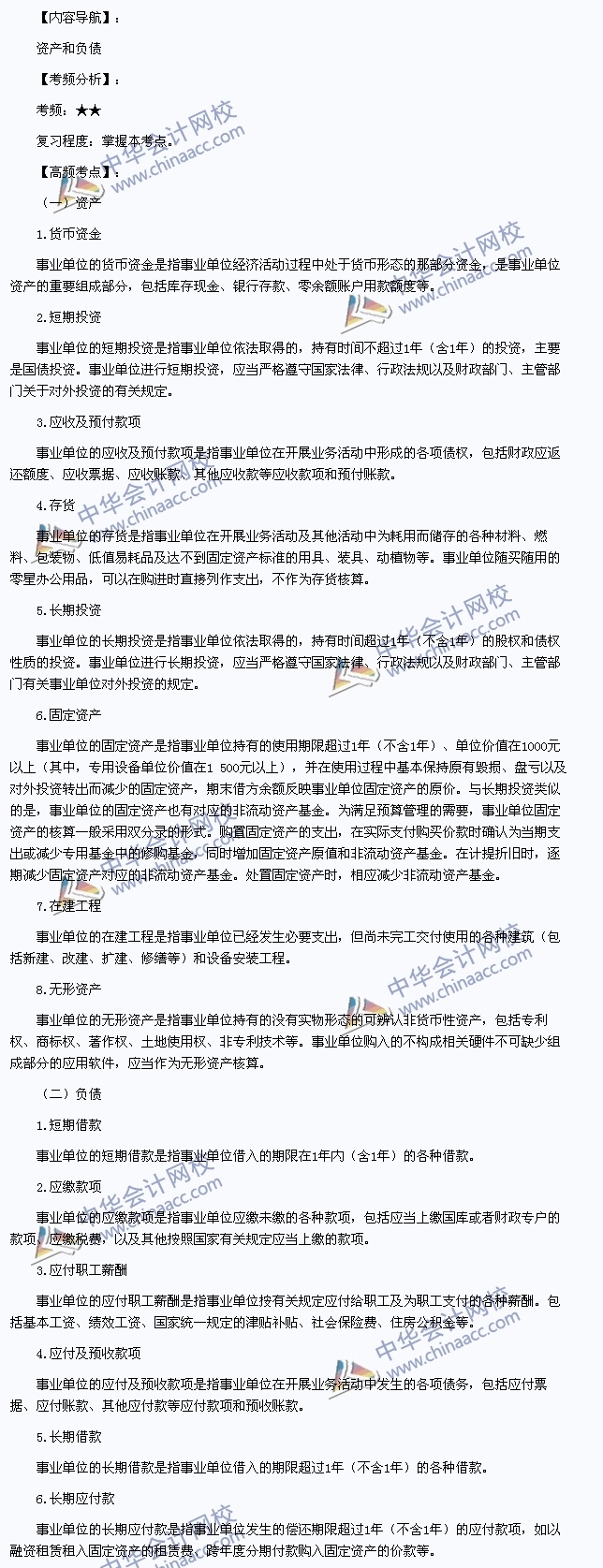 我们一起来学习2013年初级会计职称考试《初级会计实务》高频考点:资产和负债。本考点属于《初级会计实务》第十章事业单位会计基础第二节资产和负债的内容。