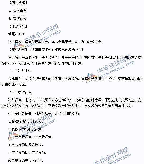 2014年初级会计职称《经济法基础》高频考点:法律事实