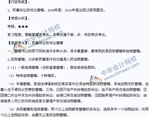 2014年初级职称《经济法基础》高频考点:民事诉讼的诉讼管辖