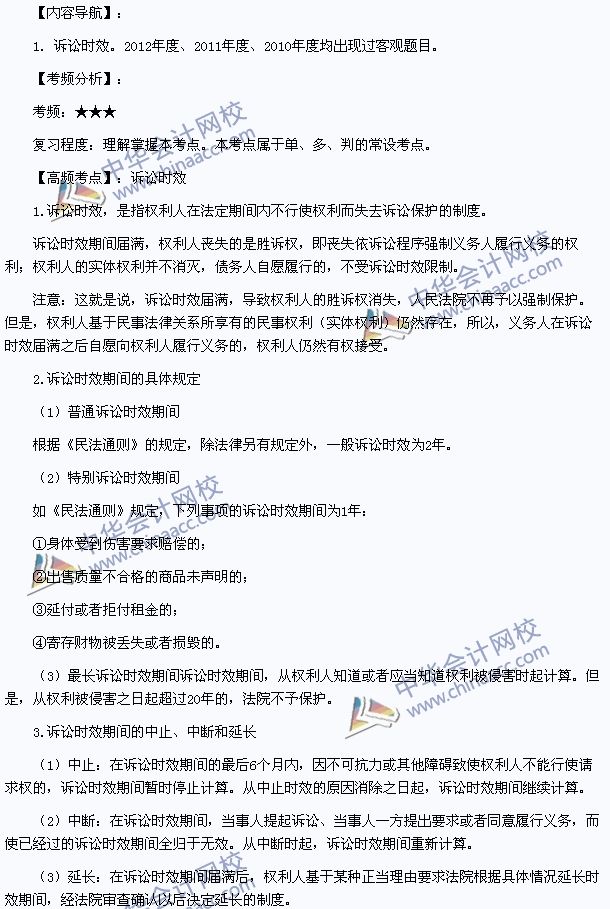 2014年初级会计职称《经济法基础》高频考点:诉讼时效