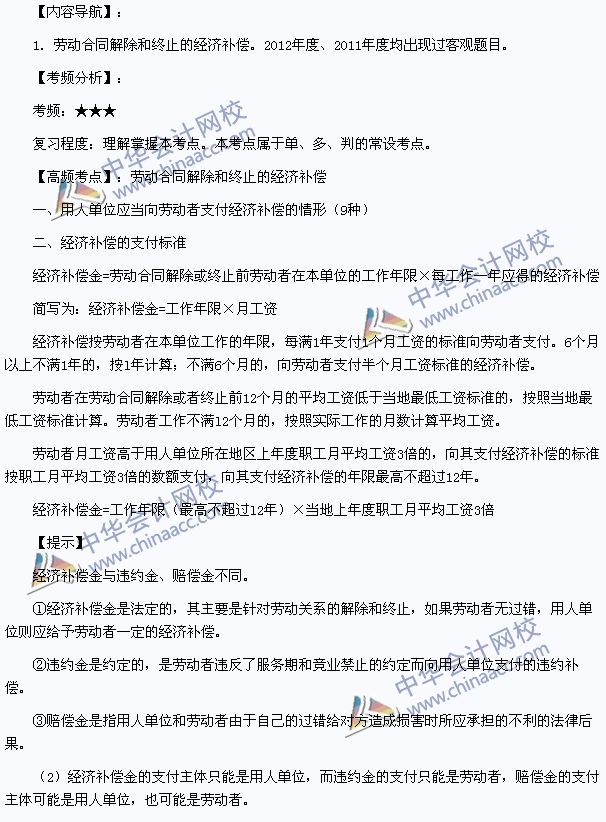 2014初级职称《经济法基础》考点:劳动合同解除和终止的经济补偿