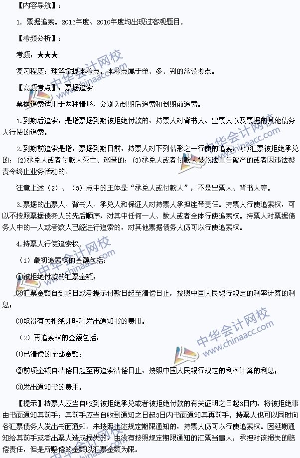 2014初级会计职称考试《经济法基础》高频考点:票据追索