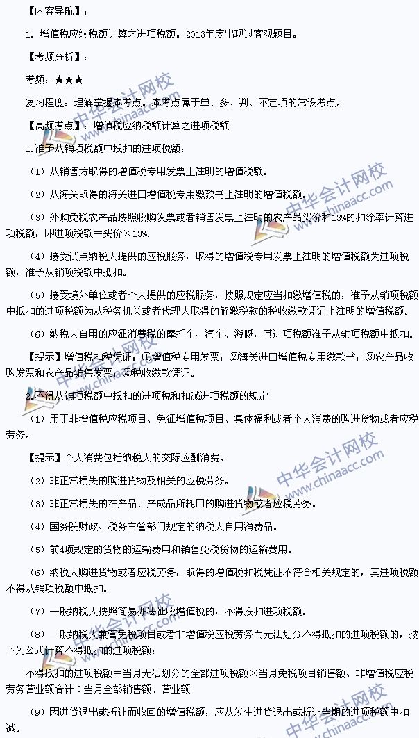 初级职称《经济法基础》高频考点:增值税应纳税额计算之进项税额
