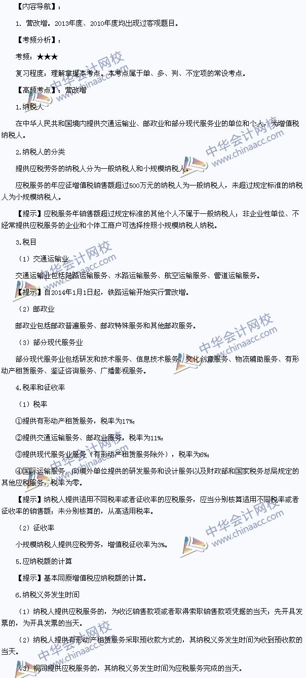 2014年初级会计职称考试《经济法基础》高频考点:营改增
