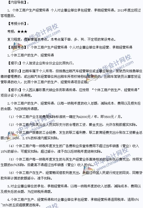 2014初级职称《经济法基础》高频考点:个体工商户生产经营所得