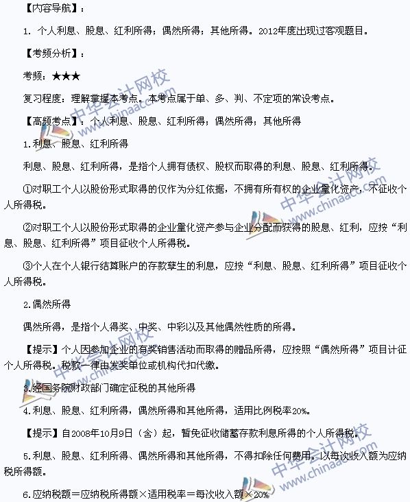 2014初级职称《经济法基础》高频考点:个人利息、股息、红利所得