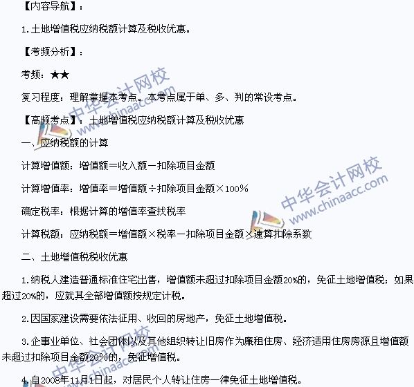 2014初级职称《经济法基础》高频考点:土地增值税应纳税额计算