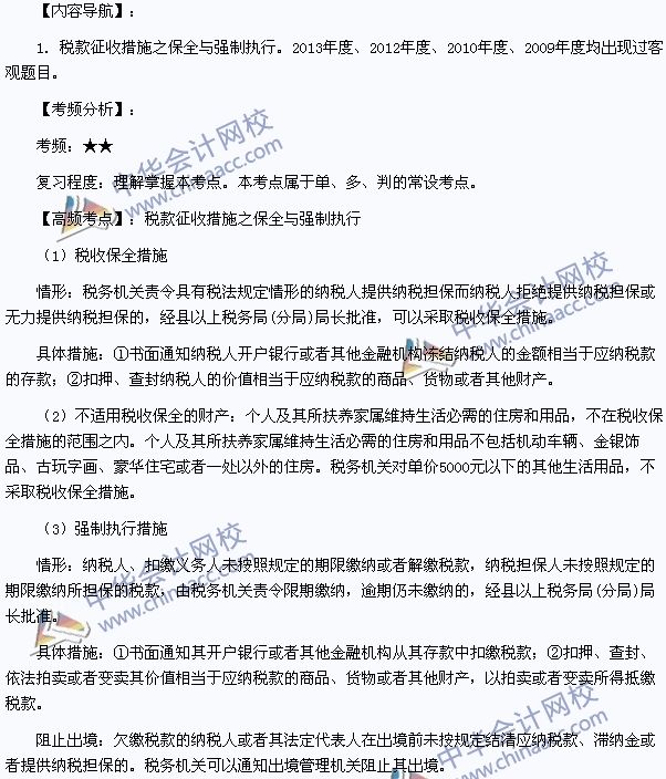 初级职称《经济法基础》高频考点:税款征收措施之保全与强制执行