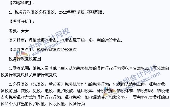 2014初级职称《经济法基础》高频考点:税务行政复议必经复议