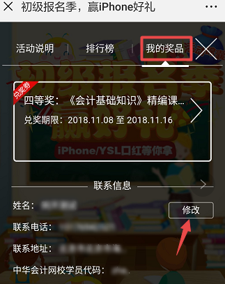 5、如果您需要修改个人信息,可以进入“我的奖品”进行修改。