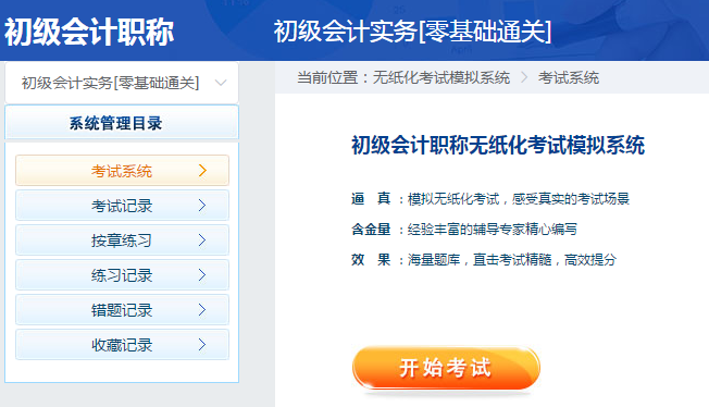 初级无纸化系统全面模拟真实考试环境,不管是机考功能、答题数量还是考试时间,都与真实考试保持一致。让大家在备考复习过程中熟悉机考环境,拥有真实的考试体验,这样在2019初级会计考试中才能应对自如。