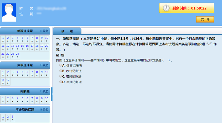 无纸化系统提供海量试题,覆盖各类考点,随机抽题组卷,全面仿真考试环境,根据实际考试时长限时交卷,习题练习达到平时如战时的效果。