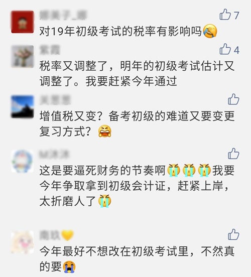 很多初级会计考生也很慌张,增值税税率变化会影响2019年初级会计职称考试吗?不会要重新学习吧!