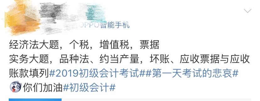 2019年初级会计职称考试进行中,大家在考试之前一定要注意饮食和作息时间,不宜食用辛辣和不卫生的食物,作息时间尽量和平时保持一致,提前规划好路线,避免迟到。下面来看看已经考完的小伙伴们的反馈: