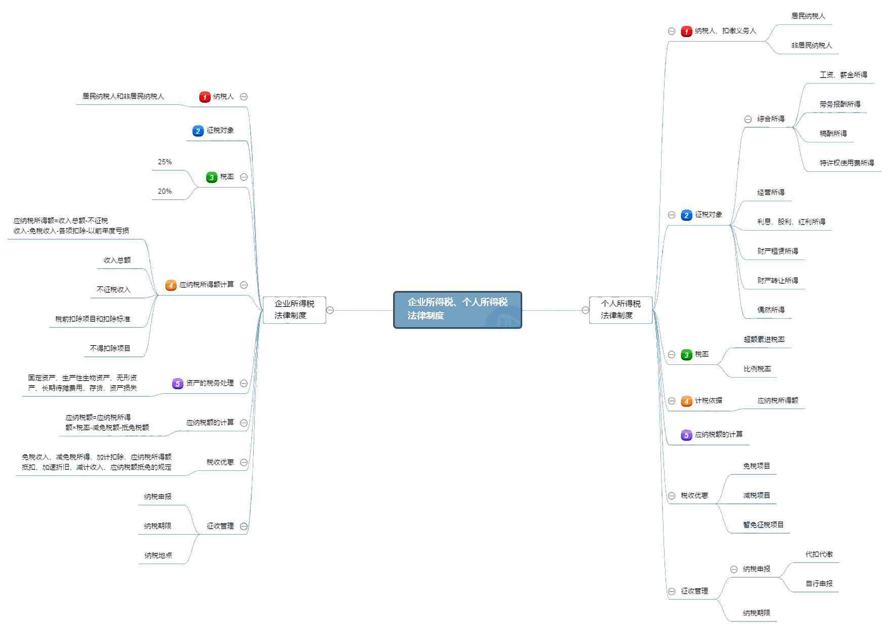思维导图可以有力地激发你的联想,通过一个关键词可以激发出更多的关键词,然后衍生出更多。同时丰富的色彩、形象的图示,也能起到激发思维的作用。以下是初级会计《经济法基础》的第五章企业所得税、个人所得税法律制度的思维导图,点击图片可查看高清大图。(后续持续更新)