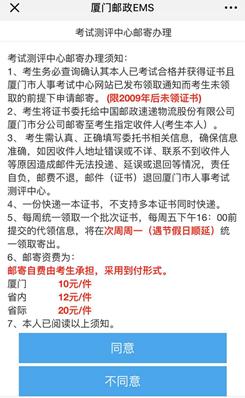 1、 考生务必查询确认其本人已考试合格并获得证书且厦门市人事考试中心网站已发布领取通知而考生未领取的前提下申请邮寄;