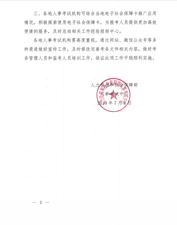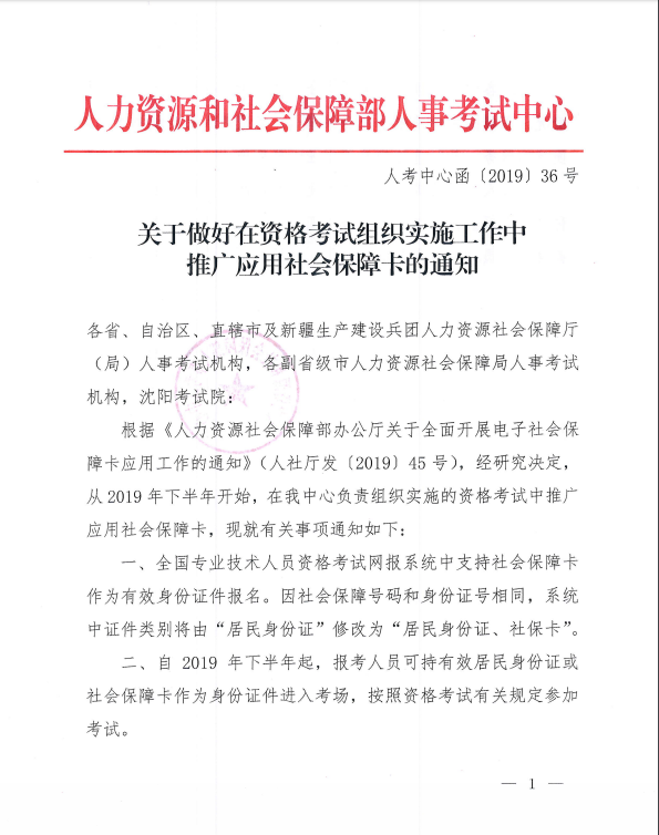 2019年7月8日,人社局发布《关于做好在资格考试组织实施工作中推广应用社会保障卡的通知》,将推广社会保障卡作为资格考试进入考场有效身份证件,请相关人员仔细阅读,以下为详情: