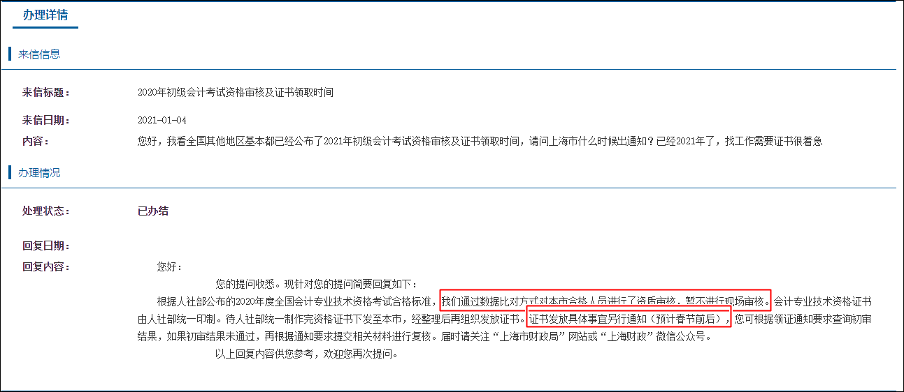 2.上海市2020年初级会计考试合格人员的资格证书预计将于春节前后发放,具体信息届时需要考生关注上海市财政局”网站或“上海财政”微信公众号。