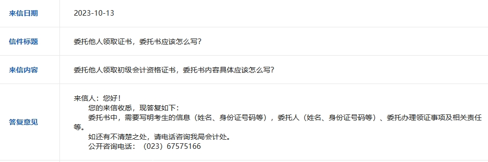 委托书怎么写?重庆财政局回复:需要写明考生的信息(姓名、身份证号码等),委托人(姓名、身份证号码等)、委托办理领证事项及相关责任等。