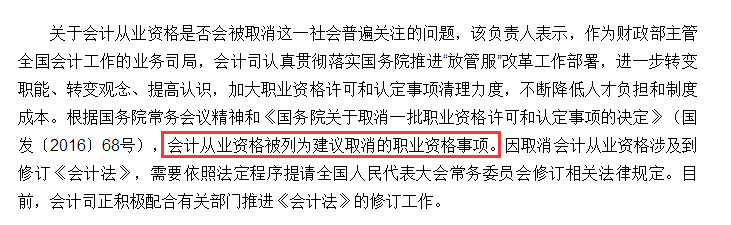1、会计从业考试被列为建议取消的职业资格事项,取消会计证是大势所需。