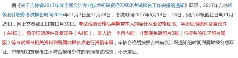 总结:从以上三种审核形式可以看出,虽然现场审核方式之前在沿用,但除了审核之外的其他流程基本已实现网上操作。而所审核的信息中,学历证书、身份证件等也均可通过网上的形式核实到信息。并且像黑龙江、河北等采用网上审核方式的地区,操作流程也已非常成熟。由此可预测,随着会计从业证的限制取消,2018年初级会计职称考试资格审核工作,有可能全面采用网上资格审核的方式,而且这也将是发展的趋势。