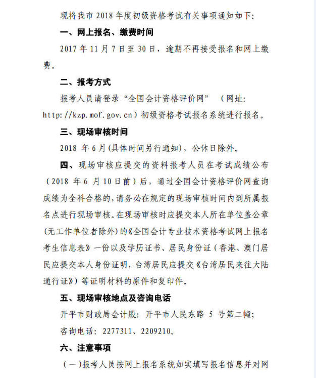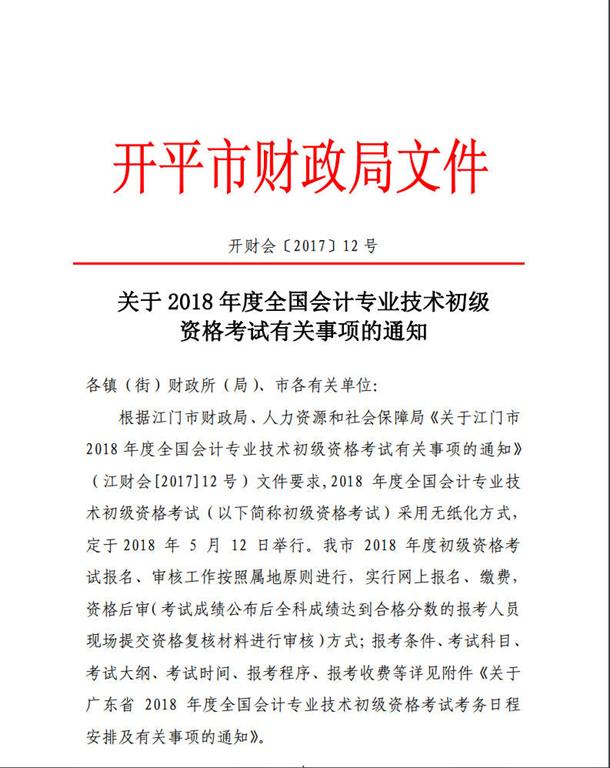 关于2018年度全国会计专业技术初级资格考试有关事项的通知