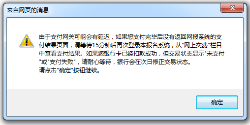 (4)系统会生成订单,考生再次确认支付金额无误后,点击“交费”按键。之后系统会相继有弹窗弹出,考生可查看相关提醒。