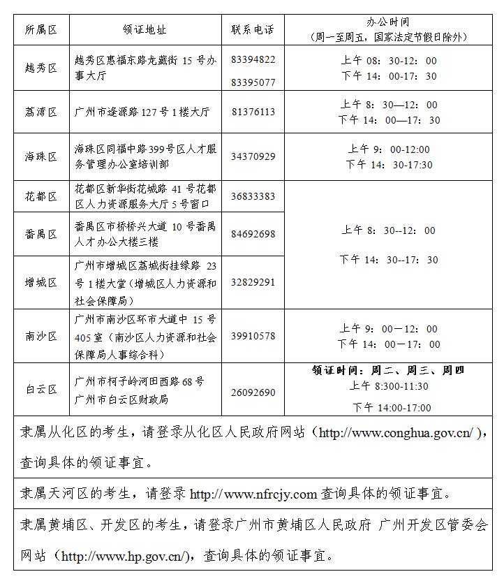 广州市2017年度全国会计专业技术初级资格证书已发至各区相关负责部门,请考生持身份证原件(代领的,需出示代领者和考生的身份证原件)按报名时隶属的区查询、领取资格证书,具体领证地址及联系方式如下: