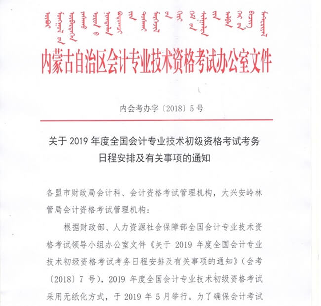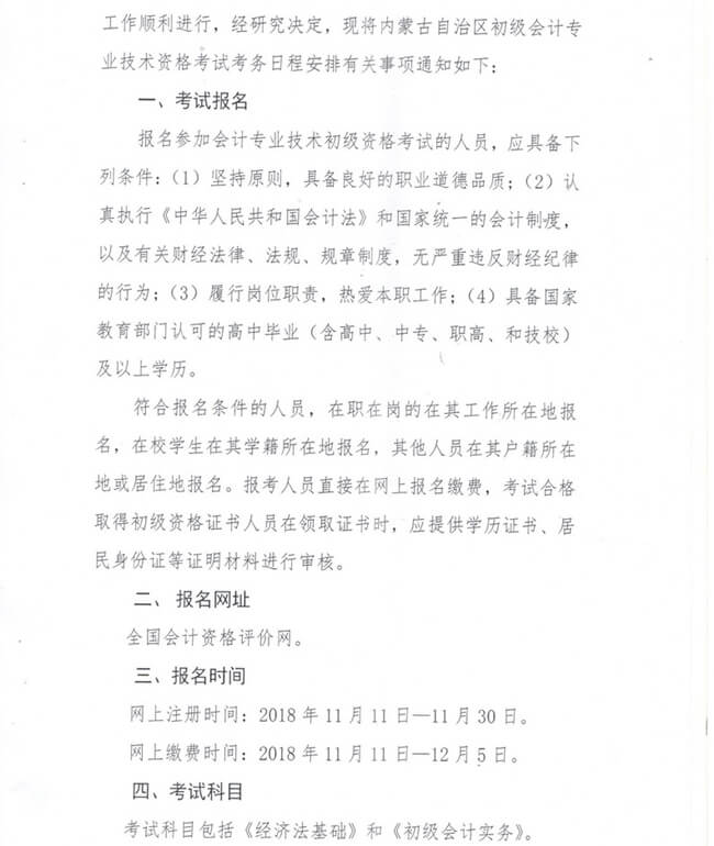 内蒙古2019年初级会计师报名时间已经确定:2018年11月11日-2018年11月30日,缴费时间:2018年11月11日-2018年12月5日。请参加2019年初级会计职称考试的朋友在规定时间内完成报名。