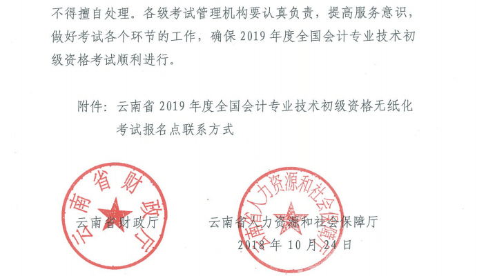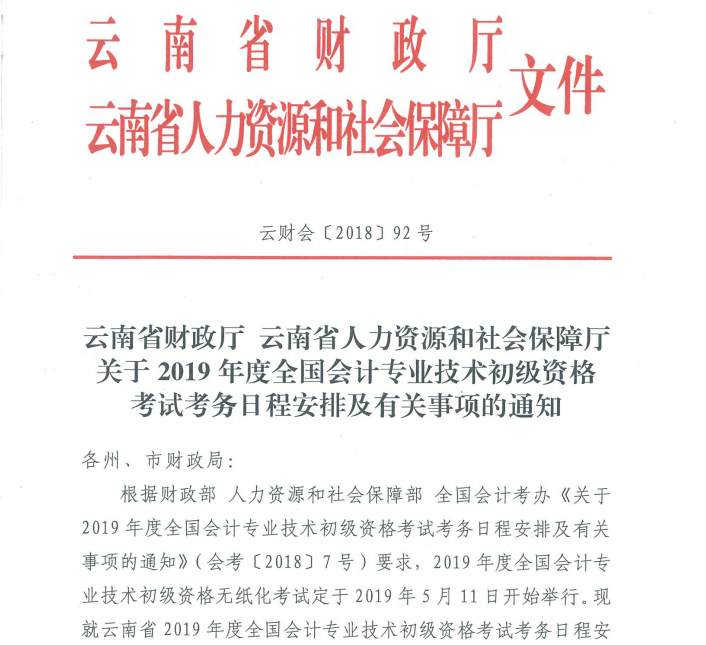 2018年11月1日-2018年11月30日是云南省2019年初级会计考试报名时间,网上缴费截止时间为2018年12月5日,请云南省2019年初级会计职称考生注意报名时间。