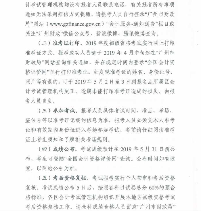 广州市财政局 广州市人力资源和社会保障局关于广州市2019年度会计专业技术初级资格考试有关事项的通知(穗财会[2018]38号)