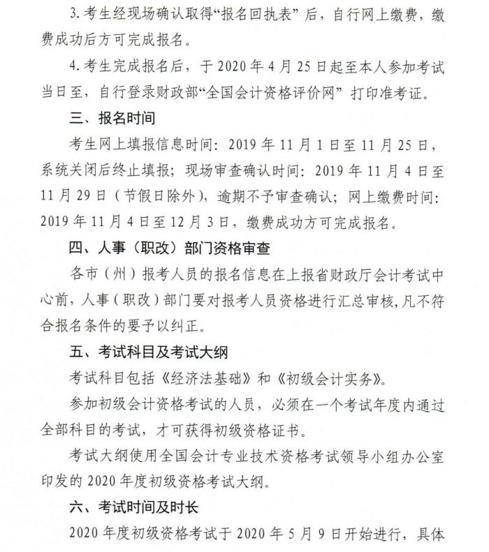 甘肃会计网已公布2020年初级会计考试报名通知,报名时间:2019年11月1日-25日,以下为详情,请相关人员知晓。