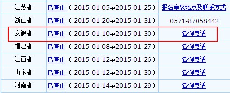 根据安徽省财政厅《2015年度全省会计专业技术资格考试考务日程安排的通知》获悉,安徽全省初级网上报名注册时间为2015年1月10日至1月30日,2015年度考试报名资格审查工作,全省实行“后审”制,即在考生成绩达到合格线后,具体考试资格条件的审查及发证工作由各市人力资源和社会保障部门负责。