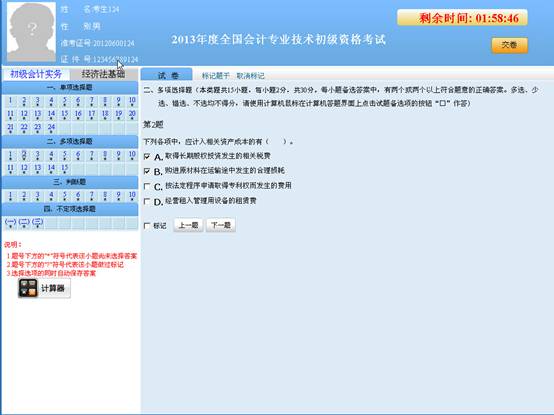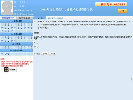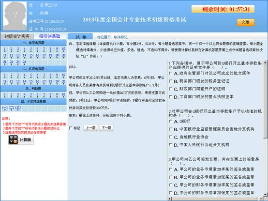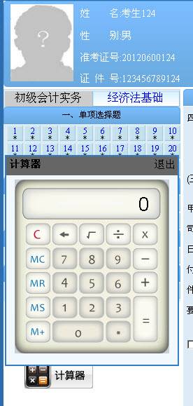 答题需要进行数值计算时,单击“计算器”按钮弹出计算器,使用完毕,单击关闭即可。