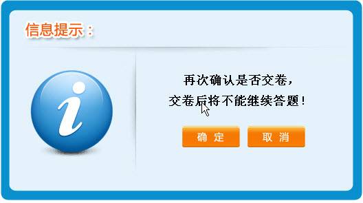 交卷之前,请务必仔细检查答题完成情况,系统会提醒考生对交卷进行两次确认,任意一次选择“取消”按钮,均可返回继续考试。交卷后将不能再继续做答。
