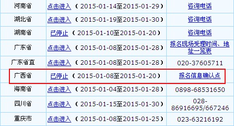 根据《关于2015年全国初级会计职称考试广西考区报名时间安排及有关事项的通知》获悉,广西2015年初级会计职称网上报名注册时间:2015年1月8日至1月20日,逾期不再补报名。网上报名注册请点击:广西财政会计网;全国会计资格评价网;会计行业管理网。
