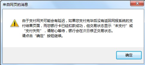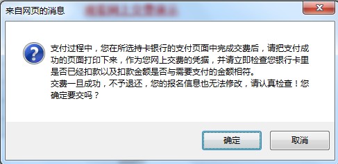 6、核对订单无误,点击“交费”,有如下两个提示,请点击“确定”;