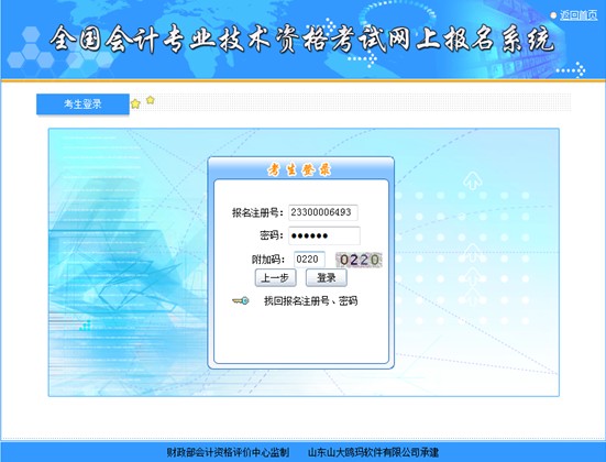 1、登录系统,输入报名注册号、密码和附加码,点击“登录”;
