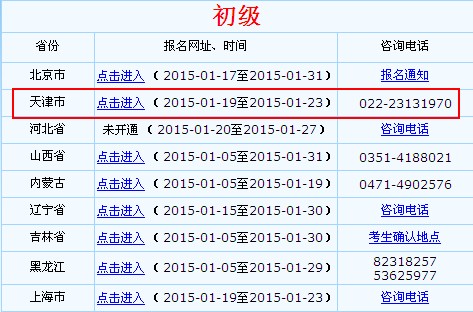 根据天津会计网《关于2015年度全国会计专业技术初级资格考试报名工作安排及有关问题的通知》获悉,2015年全国会计专业技术初级资格考试网上报名时间:2015年1月19至23日,报考人员登录全国会计资格评价网、天津会计网站报名。