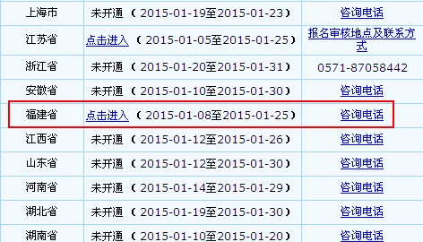 2015年福建初级会计师的考试报名26日截止:根据福建会计信息网《福建省2015年度会计专业技术资格全国统一考试报名公告》获悉,参加福建初级会计职称的考生应在2015年1月8日至1月25日(全天24小时)期间点击全国会计资格评价网进行注册,填写个人信息,并于1月20日至1月26日到报考人员到所在设区市、县(区)会计专业技术资格考试领导小组办公室指定的现场报名点进行审核。