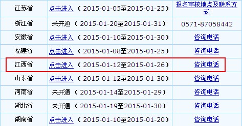 2015年江西初级会计师报名26日截止:根据江西省财政厅公布的《2015年全国会计专业技术资格考试报名有关情况的公告》获悉,初级会计资格网上报名时间为1月12日-26日,报名参加会计专业技术资格考试时,请登录全国会计资格评价网江西省财政厅综合信息网江西会计网会计专业技术资格考试报名入口。