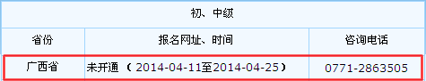 根据全国会计资格评价网()获悉,广西2014年初级会计职称考试报名时间为2014年4月11日至2014年4月25日,目前广西2014年初级会计职称考试报名入口暂未开通。