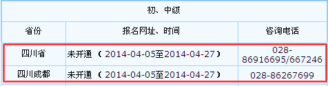 根据全国会计资格评价网()获悉,四川2014年初级会计职称考试报名时间为2014年4月5日至2014年4月27日,目前四川2014年初级会计职称考试报名入口暂未开通。