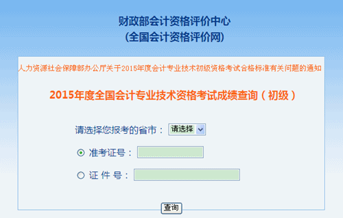 全国2015年初级会计职称考试成绩现已可以查询,请考生及时登录全国会计资格评价网()进行查询。