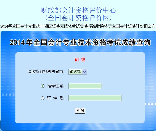 全国2014年初级会计职称考试成绩现已可以查询,请考生及时登录全国会计资格评价网()进行查询。