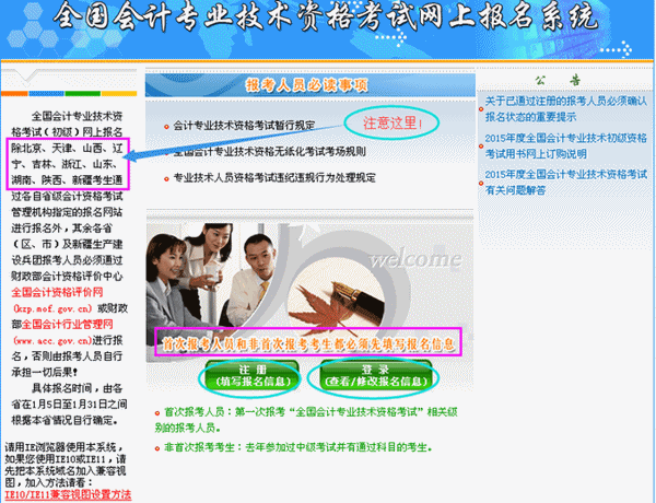 1、登录网站:全国会计资格评价网报名系统>> 各地报名入口汇总>>